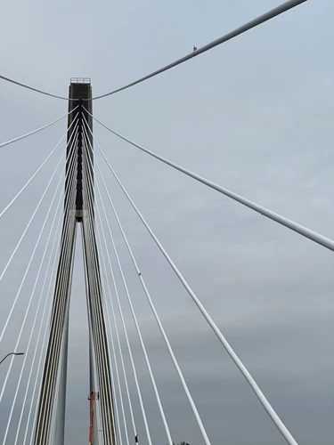 The monitoring established a stable modal baseline of primary frequencies and mode shapes and provided clear readings of seasonal variations. The system recorded a 3.3-magnitude earthquake near Chesapeake, OH, confirming unchanged modal behavior and eliminating the need for a costly field inspection. Data also revealed vortex-induced vibrations on stay cables and a notable drop in frequency on one tie, indicating potential stiffness loss and allowing prioritized inspections. This analysis directly supported cost savings by avoiding unnecessary maintenance interventions. Using MyMove, engineers could monitor sessions in real time, validate acquisitions quickly, view modal estimations, and receive automated reports, significantly reducing the time between measurement and decision.