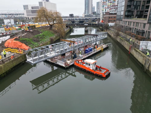5.The Stratford project presented completely different challenges, with no vehicular access to the site. How did assembling the bridge on a pontoon and floating it into position solve this problem?