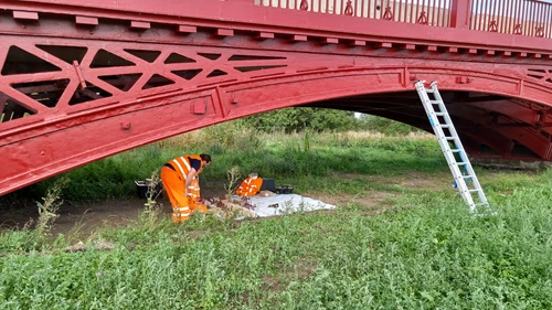 Chetwynd Bridge was ideal for continuous static monitoring because constraints, environmental conditions and local traffic could influence slow rotations and displacements over time. Monitoring included local rotations with tiltmeters at key points, displacements at selected nodes via single-channel nodes, and environmental variables to improve trend interpretation. This provided historical data that were easily comparable and useful for planned maintenance.